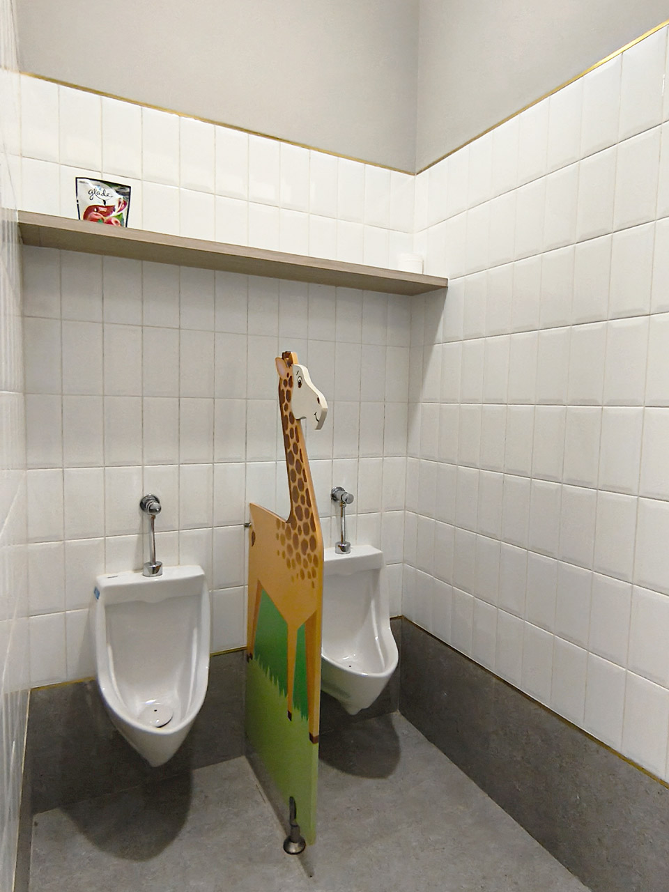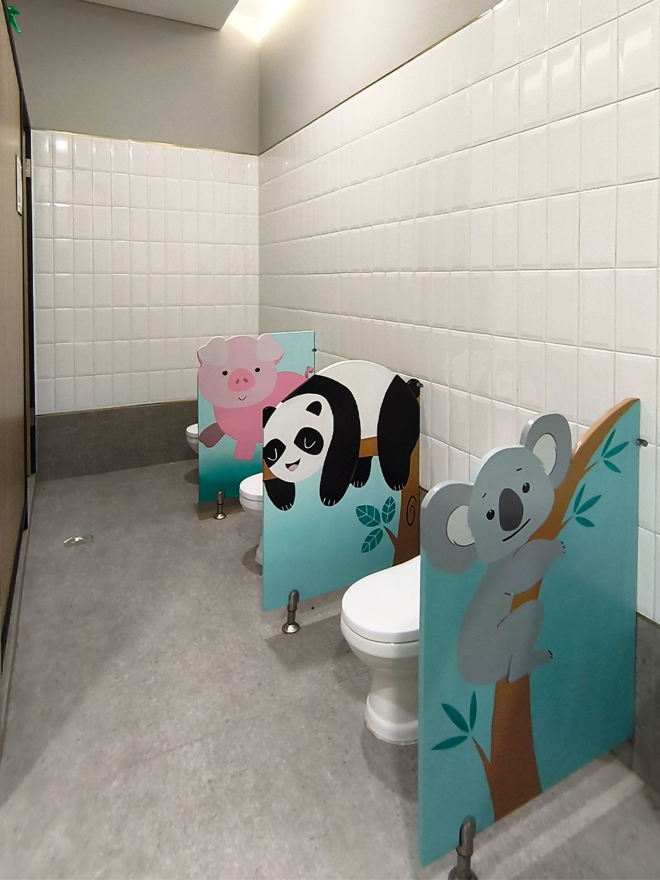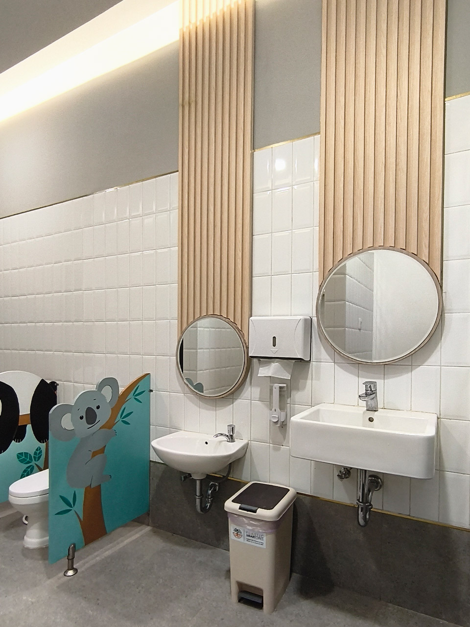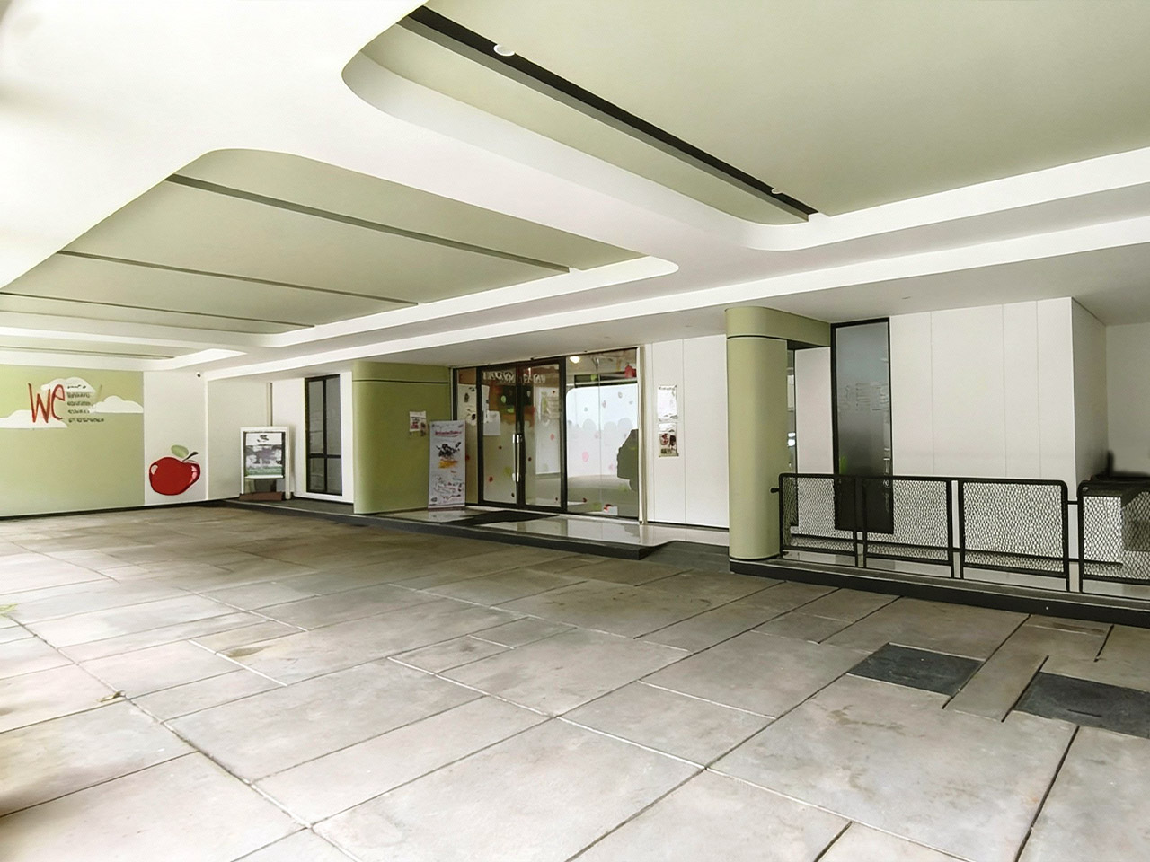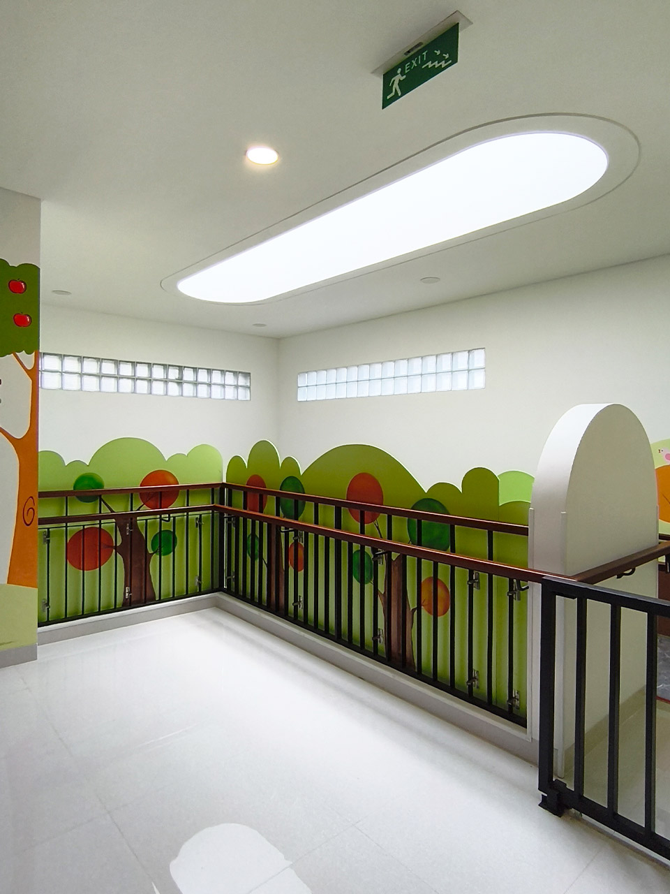⦁ Iconic Branding Integration: The placement of the vibrant apple tree logo at the center of the expansive white surface creates a child-friendly focal point, establishing a strong brand identity within the urban environment.