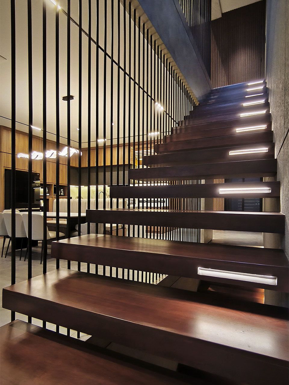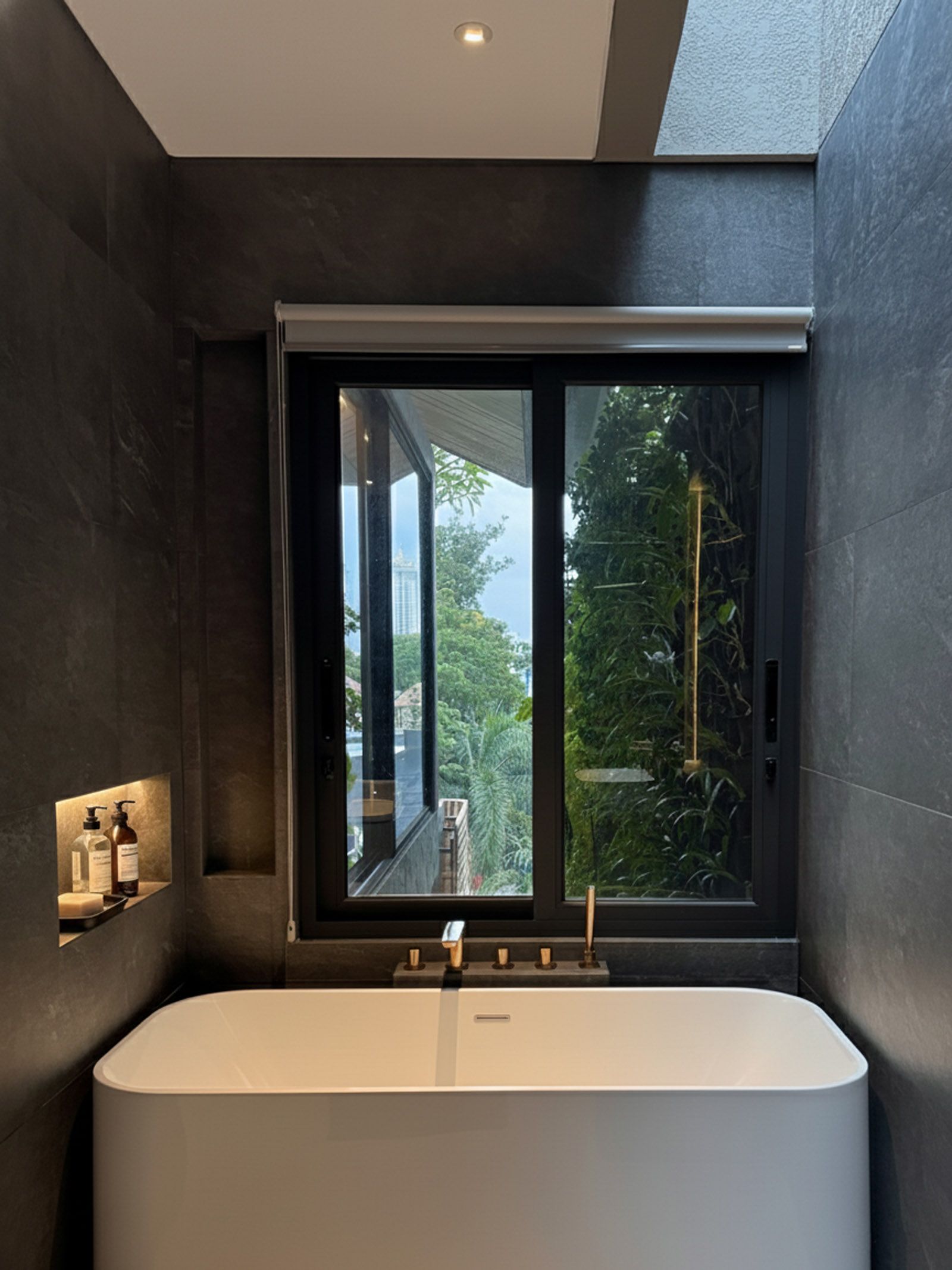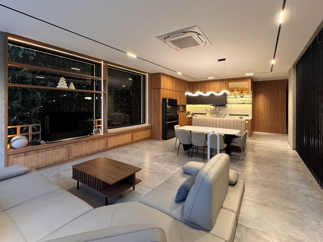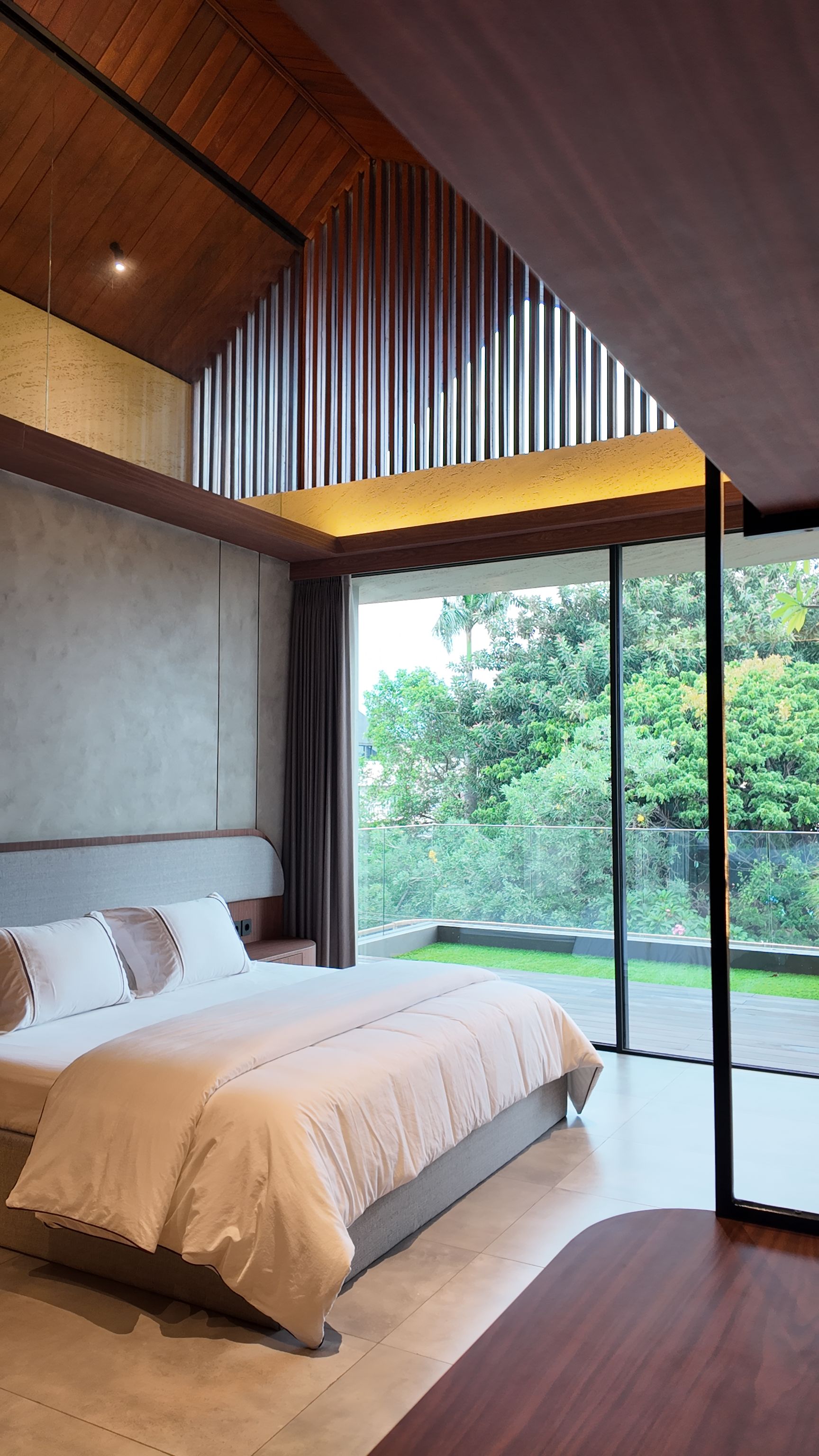 Tactile Contrast: The design plays with textural contrasts between the smooth, cool concrete walls and the coarse, warm woven rattan, resulting in a rich and non-monotonous visual aesthetic.