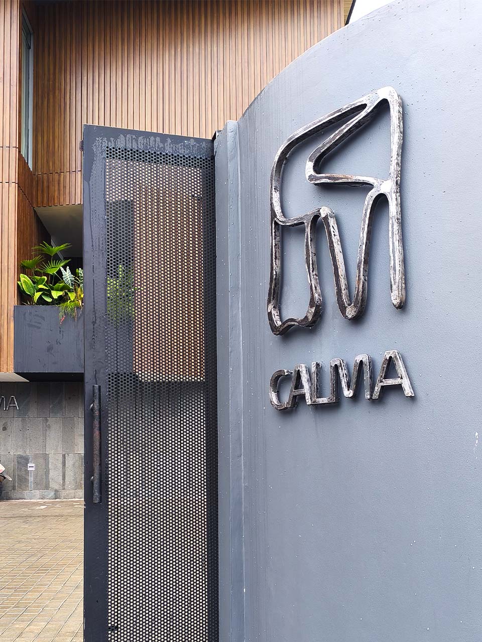 Villa Calma showcases a bold architectural silhouette amidst the lush hills of Bandung. This two-story structure is dominated by expansive floor-to-ceiling glass windows, creating a sense of transparency and weightlessness. The upper floor appears to "float" (cantilever) over the entrance area, providing shade below while making a striking visual statement. The outdoor area features an infinity pool and a spacious wooden deck, offering uninterrupted views of the surrounding nature.