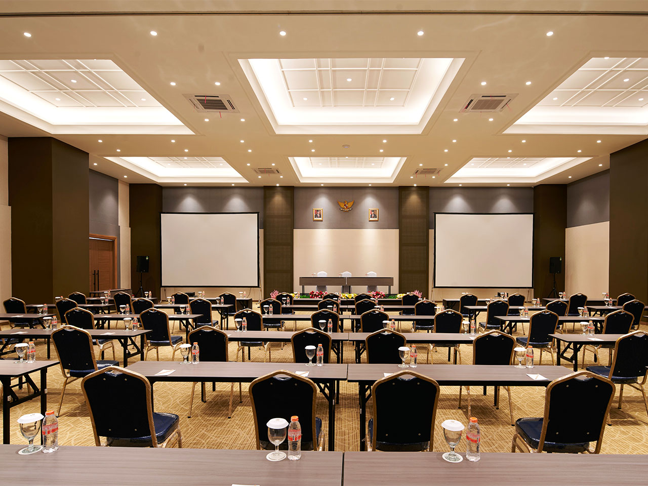 ⦁ The Grand Arrival: (Images 1, 4) The building features a majestic, wide canopy supported by clean, square pillars. This creates a grand drop-off area and a "portal" that welcomes guests into the high-ceilinged lobby.