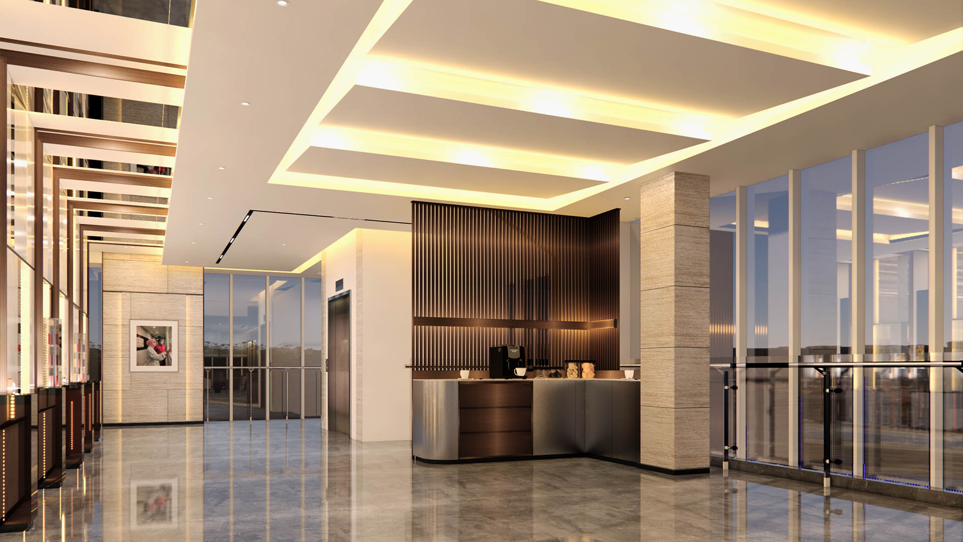 • Contemporary Materiality: The use of vertical wood slats adds warmth to the reception and waiting areas, contrasted by polished black or white marble flooring for a luxurious feel.